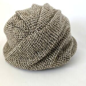 Vintage CHANEL Tweed City Hat Wool Neutrals Brown Tan Cloche Cap RARE 57