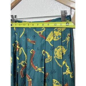 Vintage CHAUS Belts & Medallions Pleated Midi Skirt Green Size S 4 Old Money