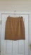 Chaus pencil skirt in a rich fall hue. Sleek and versatile design. Ideal for professional and casual settings. Color is a mix of tan camel dark mustard. Darted at waist for a tailored fit. Fully lined, back vent still sewn, concealed back zipper. Waist 32" Length 22" There are some very faint blemishes. The silk almost has a suede look to it and makes them difficult to see. It's still a beautiful, silk, wardrobe staple. Excellent condition otherwise!