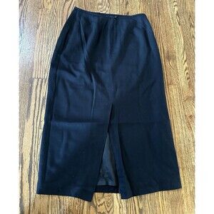 Vintage CHAUS Skirt Black Lined Straight MIDI 100% Wool Buttons Size 12