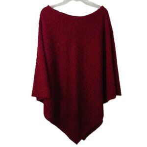 Vintage CHENILE Poncho Cape Coverup RED Long One Size Fits Most Flowy TEXTURED