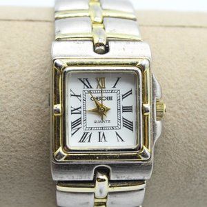 Vintage CHEROKEE Brushed Chrome And Gold Plated Women's Quartz Watch Square Dial