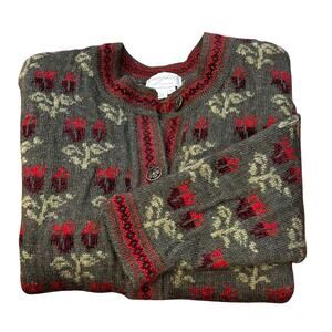 Rare Vintage CHERRY LEWIS Floral Pattern Cardigan Sweater Metal Buttons Medium