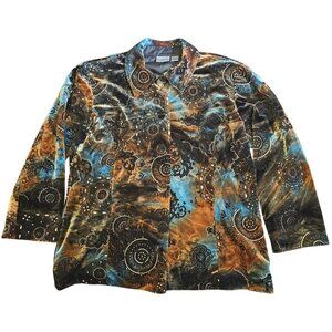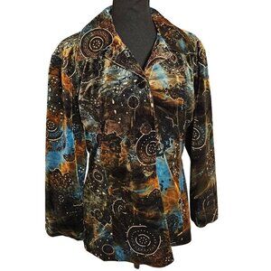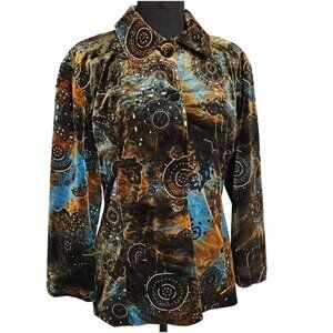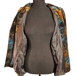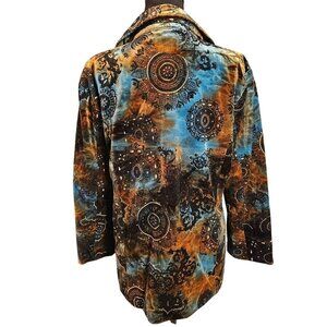 Vintage CHICO'S Womens Velvet Jacket With Mandala Print & Button Closure Size M