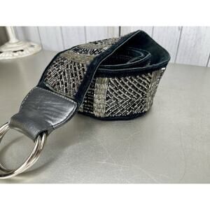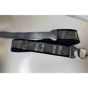 Vintage CHICOs Black Suede Leather Seed Bead Glam Boho Hip Belt Large