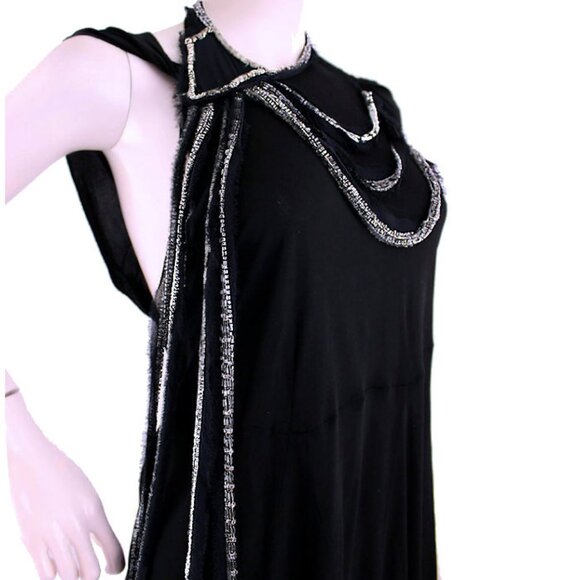 Vintage CHLOE x Phoebe Philo Beaded Art Deco Black Top Fall 2002 Runway