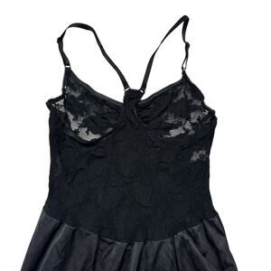 Vintage CHRISTIAN DIOR Black Lace Slip Dress with Underwire Bra. Size 36B. 1990s era. 100% Polyester. Can be worn as a slip under a dress or as a sexy evening dress. Made in the Dominican Republic. Excellent condition — no rips, stains, or holes.