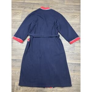Vintage CHRISTIAN DIOR Blue Red Fleece Bath Robe Lounging Tie Belt Mens L
