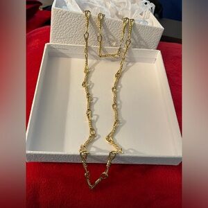 Vintage CHRISTIAN DIOR Gold Tone Twisted Link Wire Necklace, 35 inches long.