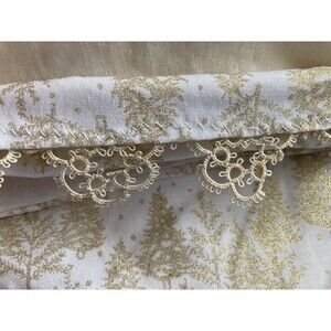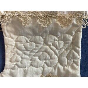 Vintage CHRISTMAS STOCKING Ivory Lace Quilted Heart With Embellishments Button