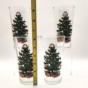 Vintage CHRISTMAS TREE Drinking Glasses Set of 4 EXCELLENT KIG Cocktail Tumblers