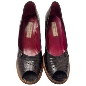 Vintage CHUCKIES New York Peep Toe Heels, Brown Leather, Size Euro 38.5 (8)