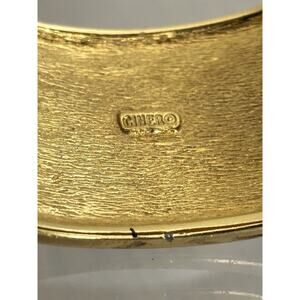 This Vintage CINER black enamel, rhinestone, and gold plate deco clamper/bangle/bracelet is a stunning piece of fashion jewelry from the 1960s. The oval-shaped bracelet features a slide closure, signed by the brand Ciner. The black enamel and rhinestones are set in yellow gold plated metal, giving it a classic and elegant look. With a vintage charm and original design, this bracelet is a timeless accessory for any jewelry collection, perfect with any outfit.