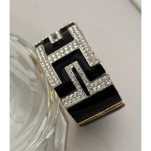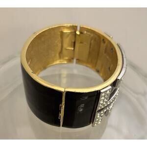 Vintage CINER Black Enamel/Rhinestone/Gold Plate Deco Clamper/Bangle/Bracelet