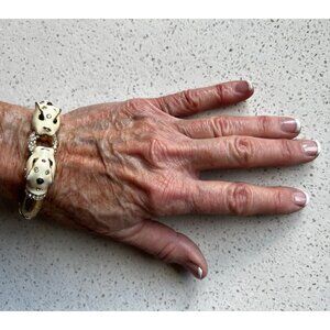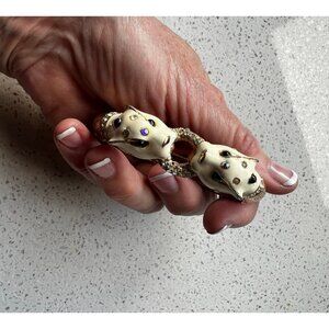 Vintage CINER Double Panther White Enamel Clamper Bracelet *RARE*