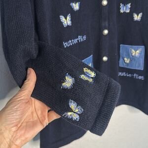 Vintage CJ Banks Butterfly Embroidered Cardigan Sweater Navy Blue Y2K Teacher