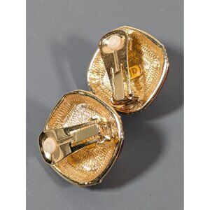 These vintage CJD orange enamel earrings feature a striking gold tone and a unique square-round design. Perfect for making a bold statement, these clip-on earrings are ideal for any occasion.