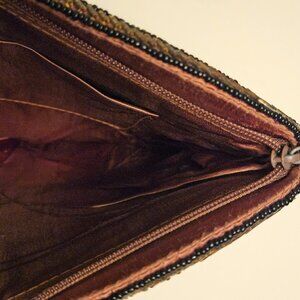 Vintage CKC Beaded Lotus Design Clutch Bag Black & Bronze Zippered Closure