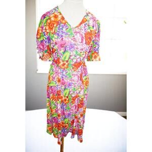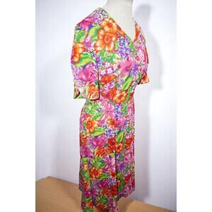 Vintage CLASSICS by Leslie Pay Bright Floral Button Front Midi Dress – Size