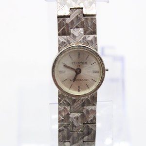Vintage CLINTON Watch Womens Silver Tone Stainless Steel Classic Retro Dial