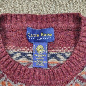 Vintage CLUB ROOM CHARTER CLUB Sweater Men's L Fair Isle Lambswool Crew Neck