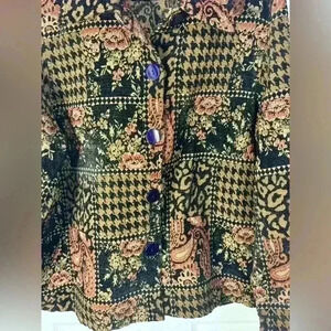 CM Shapes Tapestry collared jacket floral and animal print Pattern. Multicolored. Long Sleeve. Vintage.
