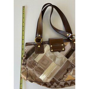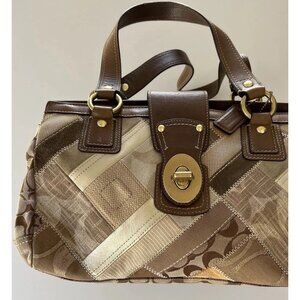 Vintage COACH 12524 Signature Khaki Patchwork Canvas Leather Turnlock Satchel