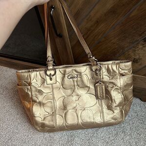 Vintage COACH Authentic Metallic Gold Embossed Purse / Bag