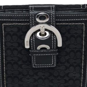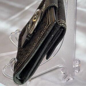 Coach Black Signature Canvas and Leather Buckle Flap Compact Wallet