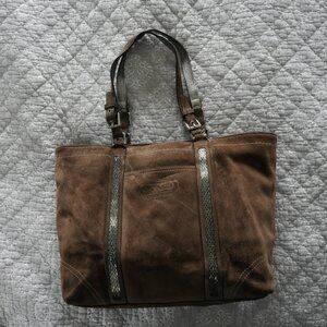 Vintage COACH Brown Suede Beaded Gallery Tote - 8B31