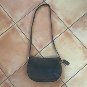 Vintage COACH Chelsea 6000 Dark Grey Genuine Leather Silver Hardware Classic Small Messenger Crossbody Shoulder Zip 90s Bag Purse