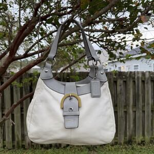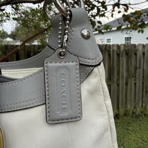 Vintage COACH Leather Soho Shoulder Bag Handbag Compartments Hobo Cream & Gray