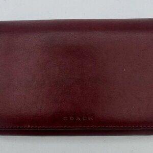 Vintage COACH Red Leather Wallet – 5 Card Slots & Zipper Coin Purse
