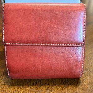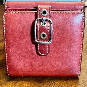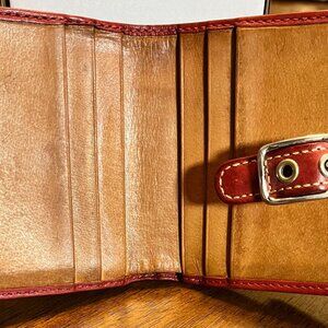 Vintage COACH Red Leather Wallet Silver Snap & Buckle Bi-Fold Contrast Stitching