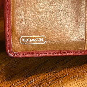 The Vintage COACH Red Leather Wallet is a stylish and classic accessory for women. Featuring a striking red leather color with silver accents, this bi-fold wallet exudes a timeless charm. Made from high-quality leather with contrast stitching, this wallet showcases the craftsmanship and durability that Coach is known for. The silver snap and buckle details add a touch of sophistication, making it a versatile and elegant choice for any wardrobe. Getting rare! In good vintage condition. Six credit card holders and a money pouch at the back.
