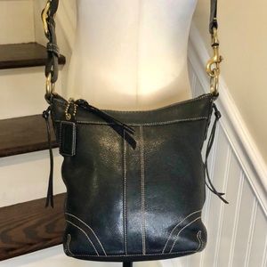 Vintage COACH Tumbled Black Leather Crossbody Shoulder Bag Contrast Stitching