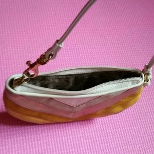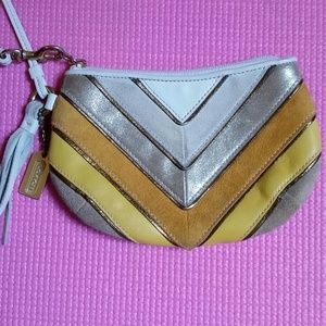 This unique wristlet is made with a blend of genuine leather and suede chevron. Very light wear.