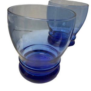 Vintage COBALT BLUE Tumbler Pedestal Bottom Set of 4 Glasses Beverages 4.25" H