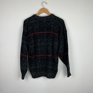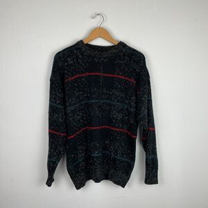 Vintage COLORE Black Red Striped Knit Sweater Men’s XL Made in Italy Wool Blend