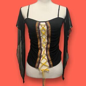 Vintage CO.ME COMO Y2K Sz Large Black Jersey Bustier Velvet Embellished Lace Up