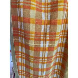 Vintage towel & washcloth set orange greens white cotton 70s mod bathroom