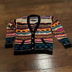 Vintage COOGI Cardigan Sweater VTG Knit Australia 100% Pure Wool Funky Unique XL