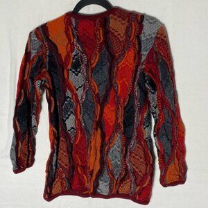 Vintage COOGI Australia Red Orange Grey Textured Knit Button Up Cardigan XS