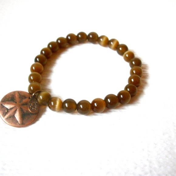 Vintage COOKIE LEE Cat`s Eye Glass Distressed Copper Charm 41517