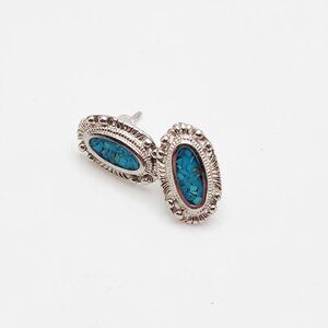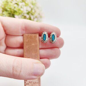 Vintage COP 1998 Turquoise Chip Oval Southwestern Dainty Small Stud Earrings