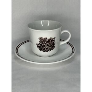 Vintage CORELLE Batik Cups & Saucers Brown Button Flowers Floral Set of 6