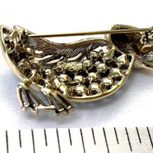 Vintage CORO Rhinestone Duck Brooch Gold Tone Mid-Century