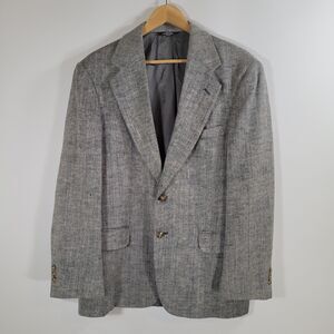 Vintage CORPORATE CASUALS 100% Silk Gray Blazer Jacket Sz XL 2 Button Classic
