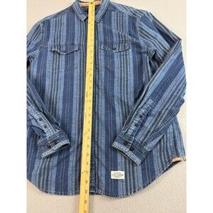 Vintage CPO Shirt Mens Medium Blue Denim Striped Navy Anchor Buttons Military