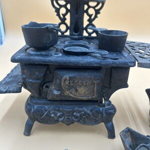 Vintage CRESCENT Cast Iron Salesman Sample Miniature Stove & Accessories